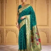 Bottle Green Banarasi Silk Saree with Antique Gold Zari Border