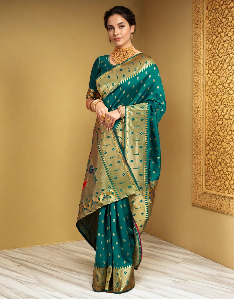 Bottle Green Banarasi Silk Saree with Antique Gold Zari Border