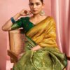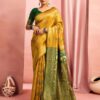 Golden Yellow Banarasi Silk Saree with Deep Green Zari Pallu