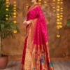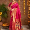 Rani Pink Banarasi Silk Saree with Antique Gold Zari Border