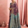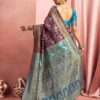 Royal Purple Banarasi Silk Saree with Teal Blue Zari Pallu