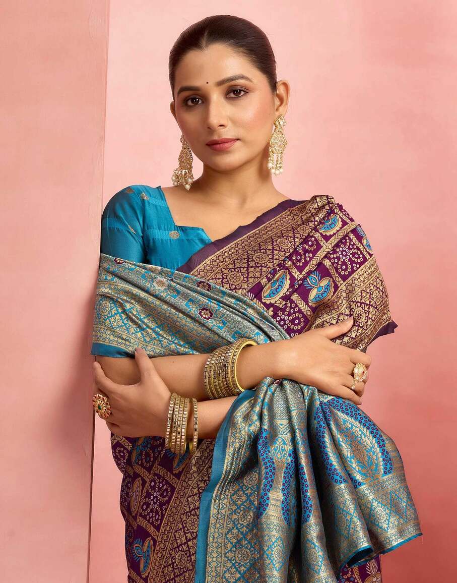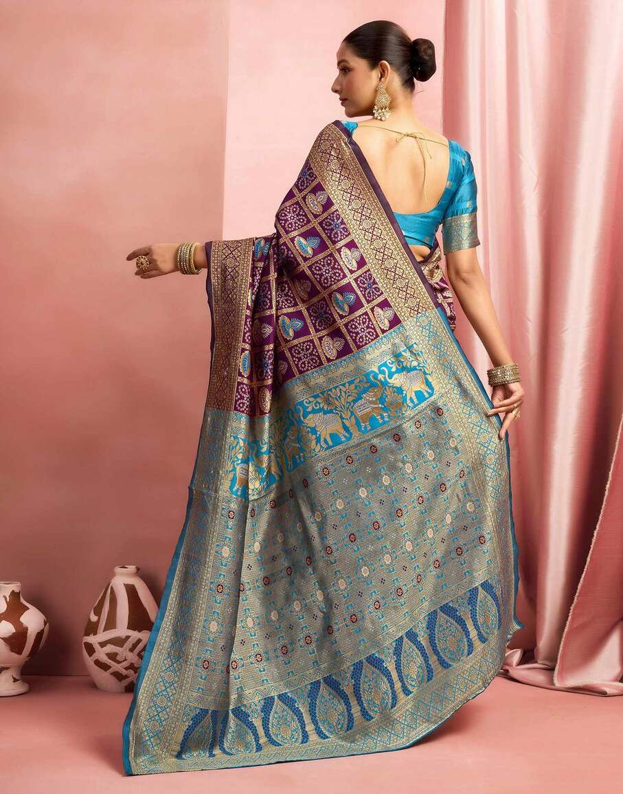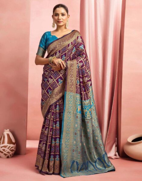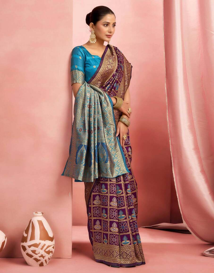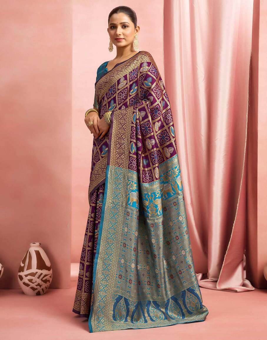 Royal Purple Banarasi Silk Saree with Teal Blue Zari Pallu