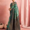 This elegant sea green Banarasi silk saree is a graceful pick for weddings, festive occasions, and traditional gatherings. Crafted from rich silk, the saree features finely woven floral motifs across the body that add a soft, refreshing charm. The antique gold zari border enhances its luxurious appeal, while the beautifully detailed pallu with traditional patterns brings a regal finish. With its smooth texture and fluid drape, this saree offers both comfort and sophistication. Pair it with a matching blouse and classic gold jewellery for a timeless ethnic look that stands out effortlessly.